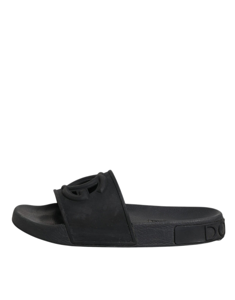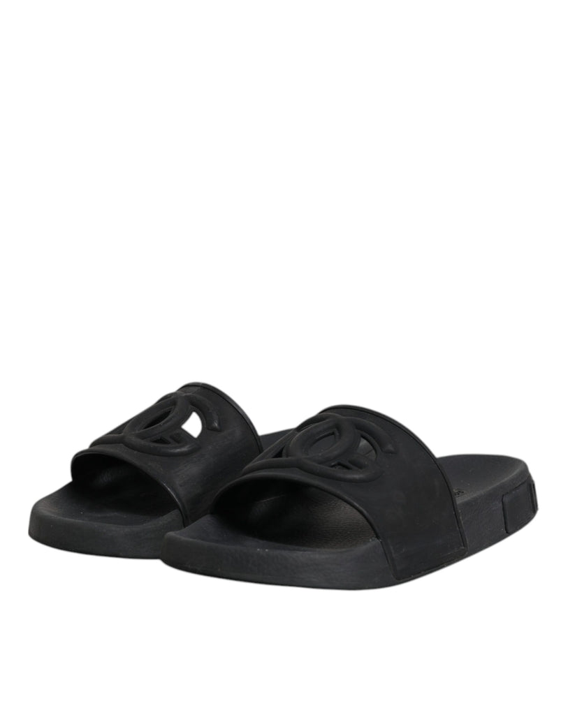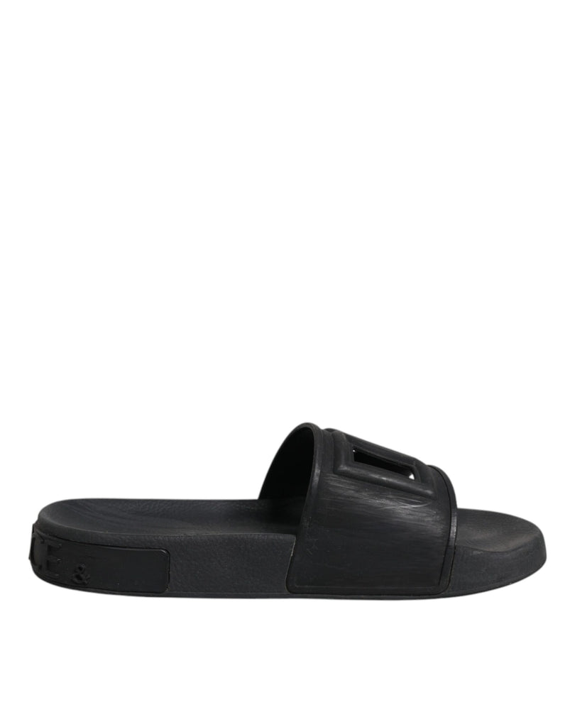 Dolce & Gabbana Black Rubber Slides Sandals Beachwear Shoes