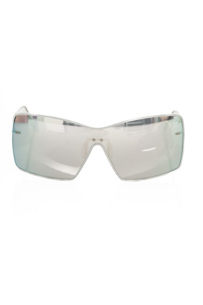 Unveil your daring style with Frankie Morello’s avant-garde Shield Sunglasses. These shades are the epitome of urban chic, with their sleek metallic fibre construction and striking silver hue. Designed in Italy, they feature a slender metal profile that encapsulates a bold personality, while the gray mirror lenses infuse a touch of mystery. Perfect for the fashion maverick who doesn’t shy away from making a statement.