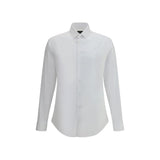 Giorgio Armani’s cotton Shirt features a slim fit and tailored elegance. It features a collar with small sails and metal slats, a mother-of-pearl button closure, and button and slit cuffs. English seams and back darts complete the design with a flawless finish.
