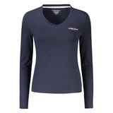 Dive into the epitome of chic with this striking Guess Jeans V-neck top, a perfect fusion of sustainable fashion and timeless style. Crafted with the finest blend of cotton and elastane, this slim-fit, long-sleeved t-shirt is a testament to eco-friendly luxury. Its signature print and iconic logo make a bold statement against the alluring blue hue. A garment that doesn’t just look good but feels exquisite too, hailing all the way from BD. Ideal for those who dare to stand out and care for the planet.