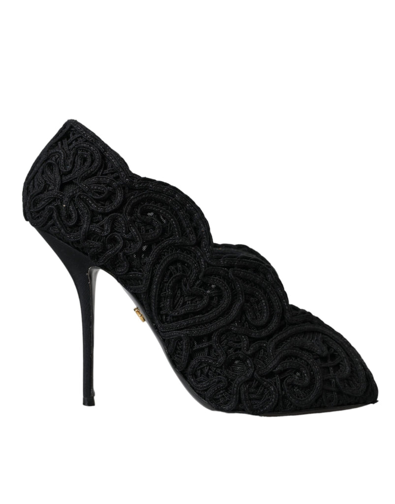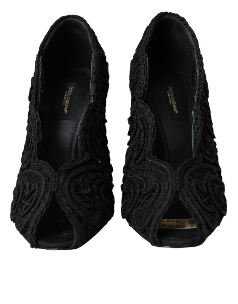 Dolce & Gabbana Black Cordonetto Ricamo Pump Open Toe Shoes