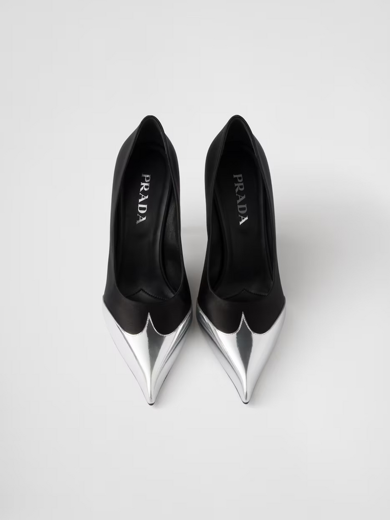 Gorgeous brand new with tags, Black Satin And Metallic Leather Pumps