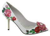 Dolce & Gabbana White Leather Roses Crystal Pumps Shoes