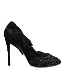 Dolce & Gabbana Black Lace Stretch Heels Mid Calf Boots Shoes