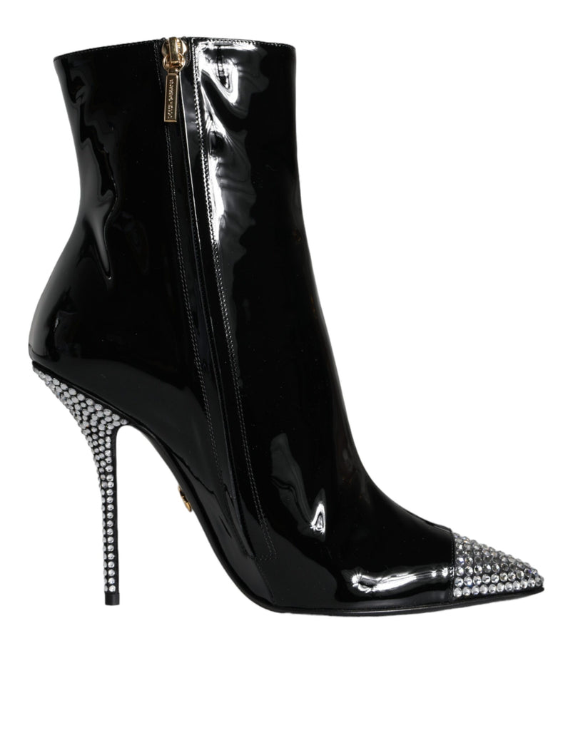 Dolce & Gabbana Black Patent Leather Crystal Heel Boots Shoes