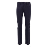 Jacob Cohen Bard Fine Wool Trousers in Blue. Crafted from lightweight blue wool, these five-pocket trousers feature a button and covered buttons, a regular slim fit, and a dark blue ponyskin tag with an applied logo on the back. Sold with a cotton bandana and scented with the exclusive Jacob Cohen fragrance.