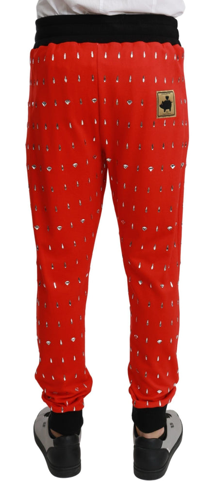 Dolce & Gabbana Red Piggy Bank Cotton Crystal Trousers Pants