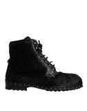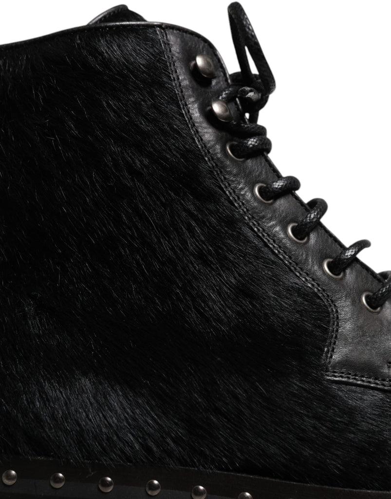Absolutely stunning, 100% Authentic, brand new with tags Dolce & Gabbana lace up boots featuring upper made of black pony skin leather and sole in super light natural rubber.
