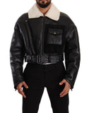 Dolce & Gabbana Black Leather Shearling Biker Coat Jacket