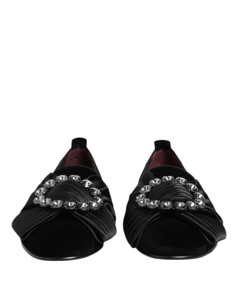 Gorgeous brand new, 100% Authentic Dolce & Gabbana velvet loafer VATICANO with crystal ribbon brooch and gold metal DG logo heel in black.