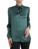 Dolce & Gabbana Dark Green Silk Ascot Collar Blouse Top