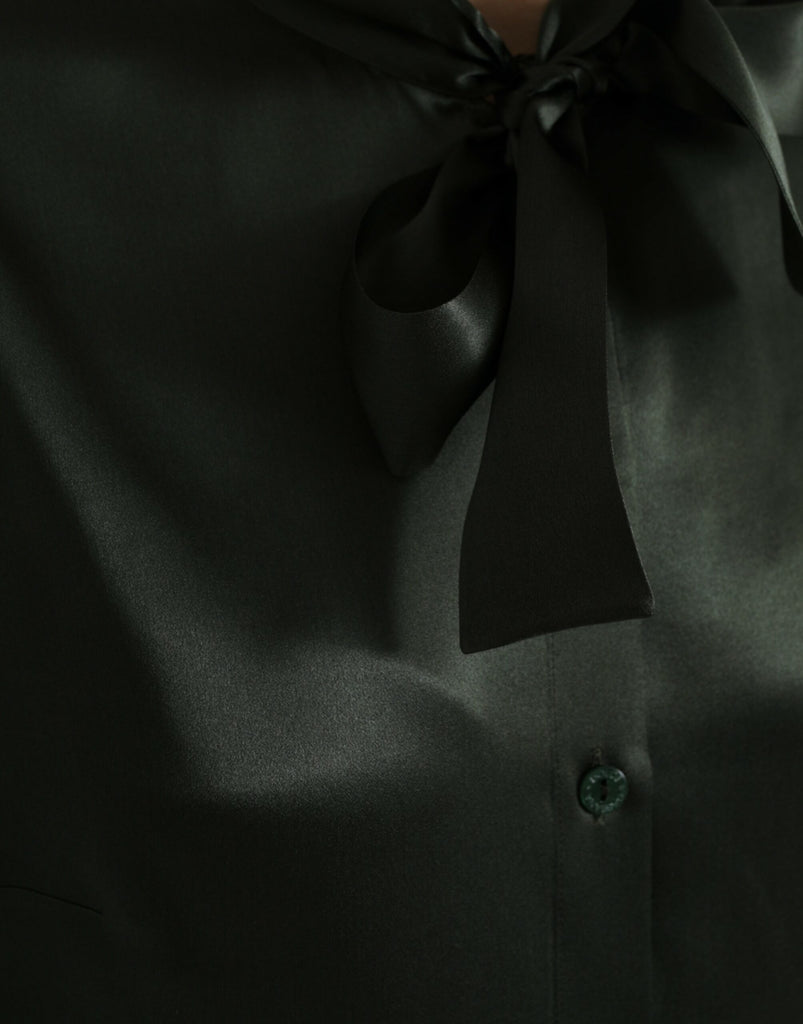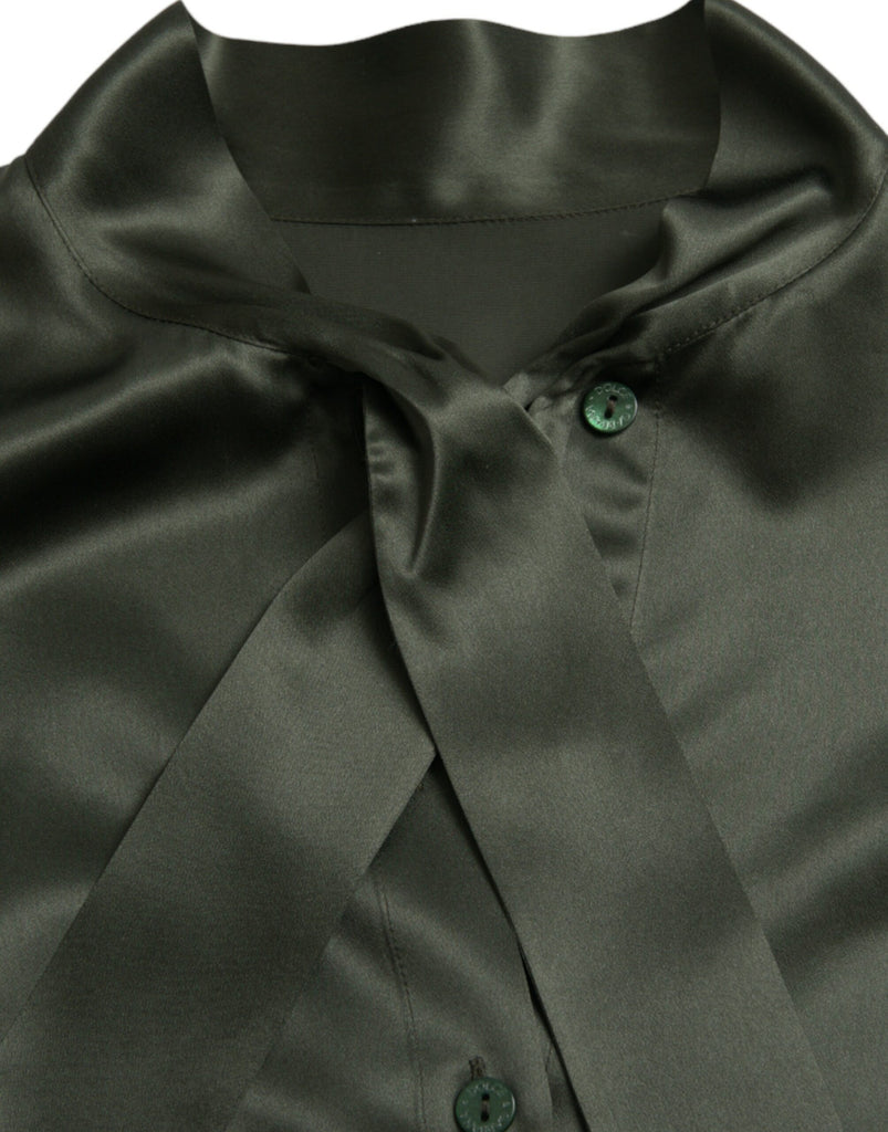 Gorgeous brand new with tags, 100% Authentic Dolce & Gabbana ascot collar button closure long sleeves blouse top. Crafted from silk.