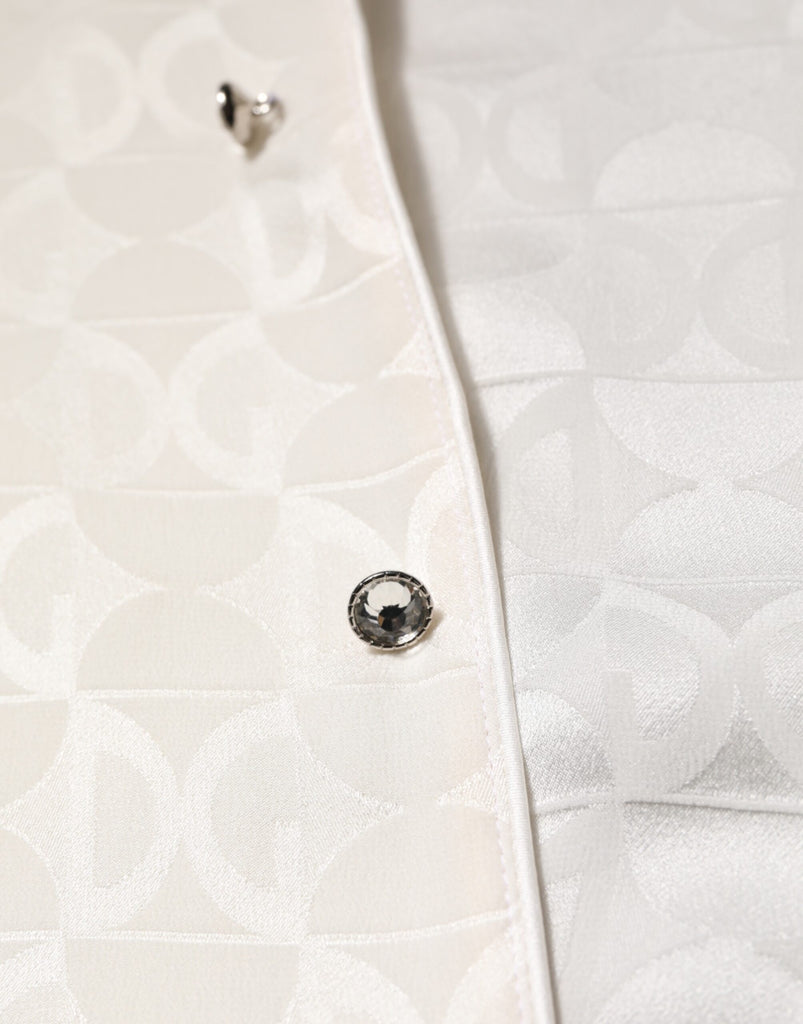 Gorgeous brand new, 100% Authentic DOLCE & GABBANA dress shirt with a sleek all-over DG logo print on luxurious white silk. This long-sleeve shirt features a classic collar, button-down front, and refined tailoring that offers a sophisticated silhouette. Crafted in Italy, it combines elegance and comfort — a perfect addition to any modern gentleman’s wardrobe for formal or upscale occasions.