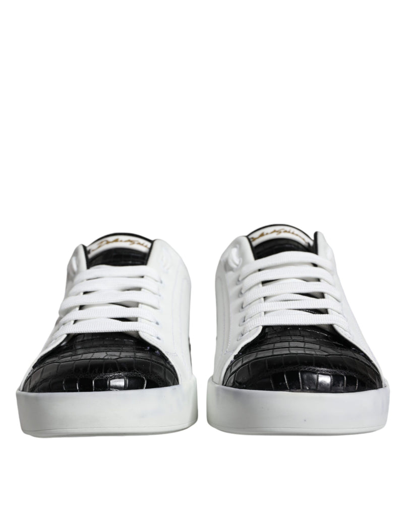 Dolce & Gabbana Black Leather Logo Portofino Sneaker Shoes