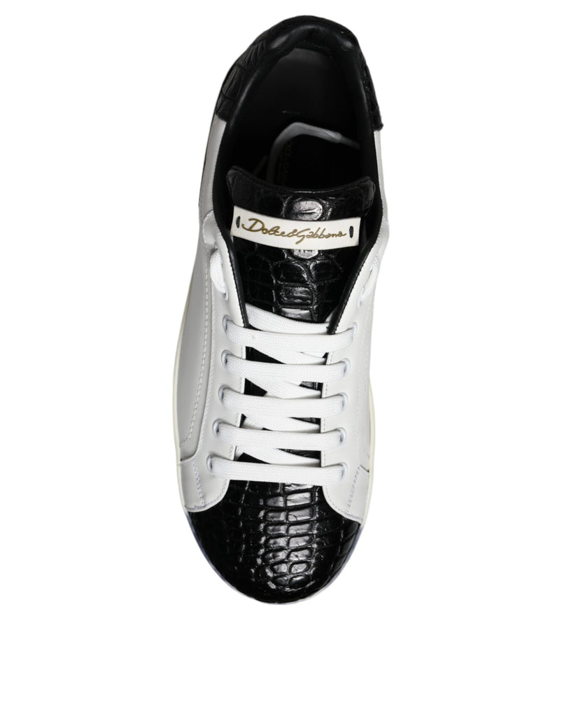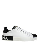 Dolce & Gabbana Black Leather Logo Portofino Sneaker Shoes