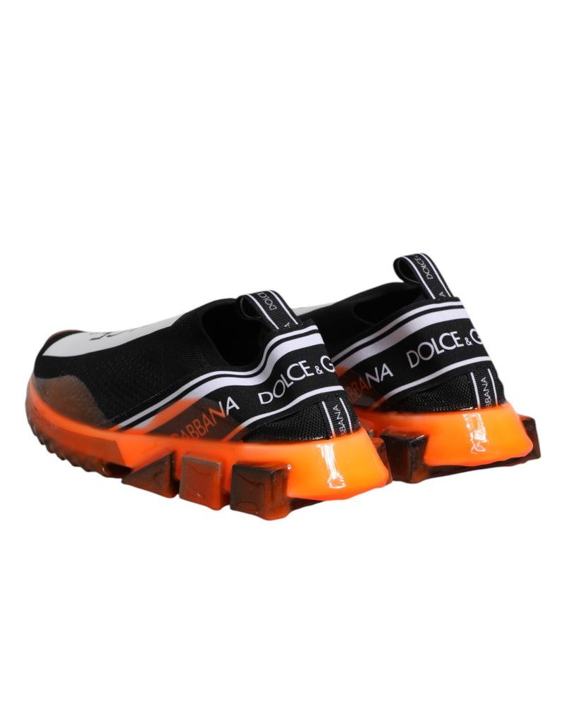 Gorgeous brand new, 100% Authentic Dolce & Gabbana Black and white ‘Sorrento’ sock sneakers. Decorated with a logo print in white and black. Fabric pull strap sewn-in at the back. Black decorative rubber sole.