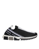 Gorgeous brand new with tags, 100% Authentic Dolce & Gabbana Black and white ‘Sorrento’ sock sneakers. Decorated with a logo print in white and black. Fabric pull strap sewn-in at the back. Black decorative rubber sole.