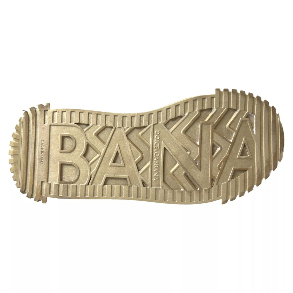 Gorgeous brand new with tags, 100% Authentic Dolce & Gabbana sneakers flaunting a gold-hued exterior. They’ve been made using fine materials into a low-top design and have logo detailing on the laces, sides and counters. They are complete with leather insoles and durable rubber soles.