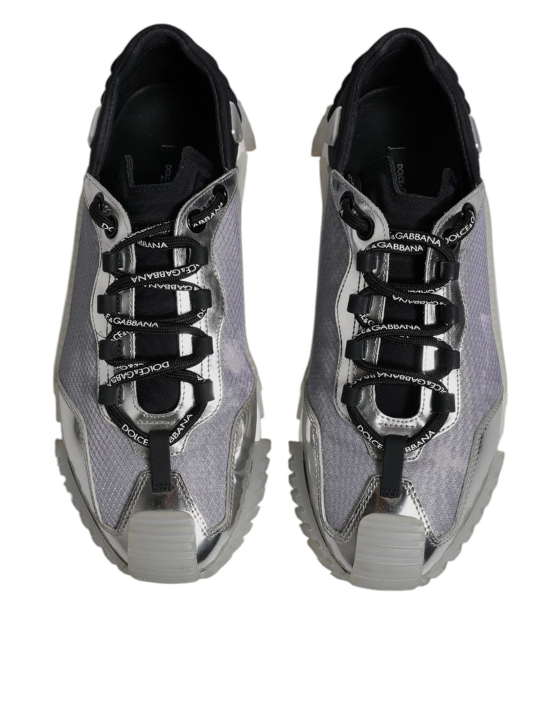 Dolce & Gabbana Silver Black Nylon NS1 Low Top Sneakers Shoes