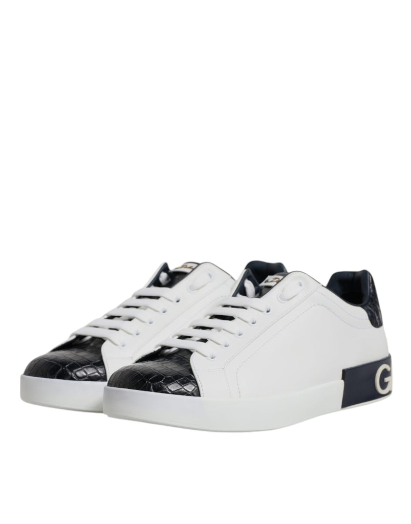 • Name : Dolce & Gabbana White Black Leather Portofino Sneaker Shoes