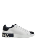 Dolce & Gabbana White Black Leather Portofino Sneaker Shoes