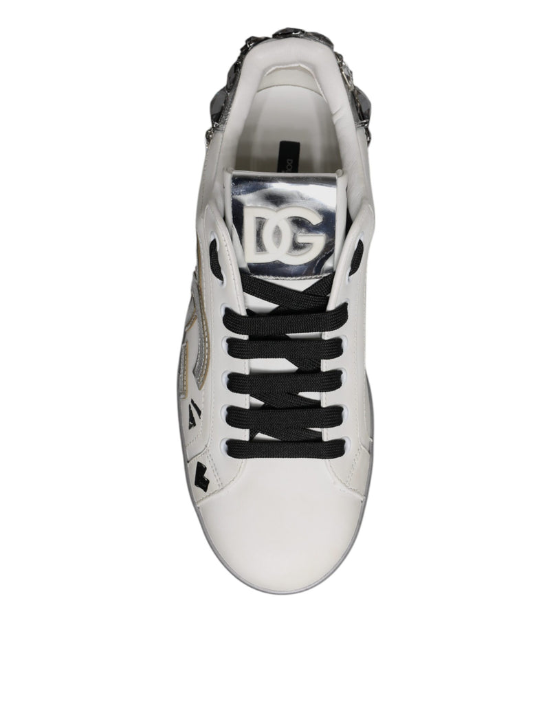 Gorgeous brand new, 100% Authentic Dolce & Gabbana crystal embellishment logo portofino low-top sneaker shoes.