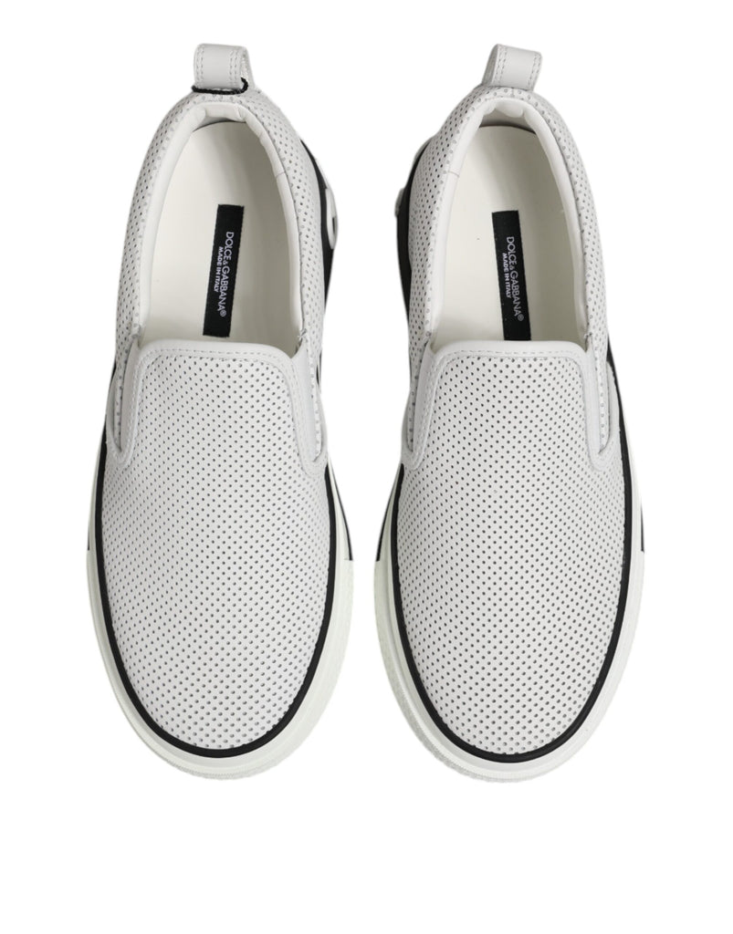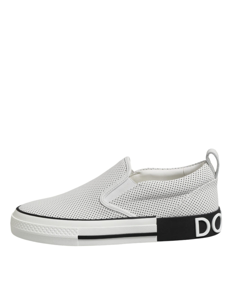 Dolce & Gabbana White Dotted Leather Slip On Men Sneakers Shoes