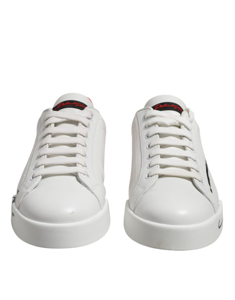 Dolce & Gabbana White Red Logo Low Top Leather Sneakers Shoes