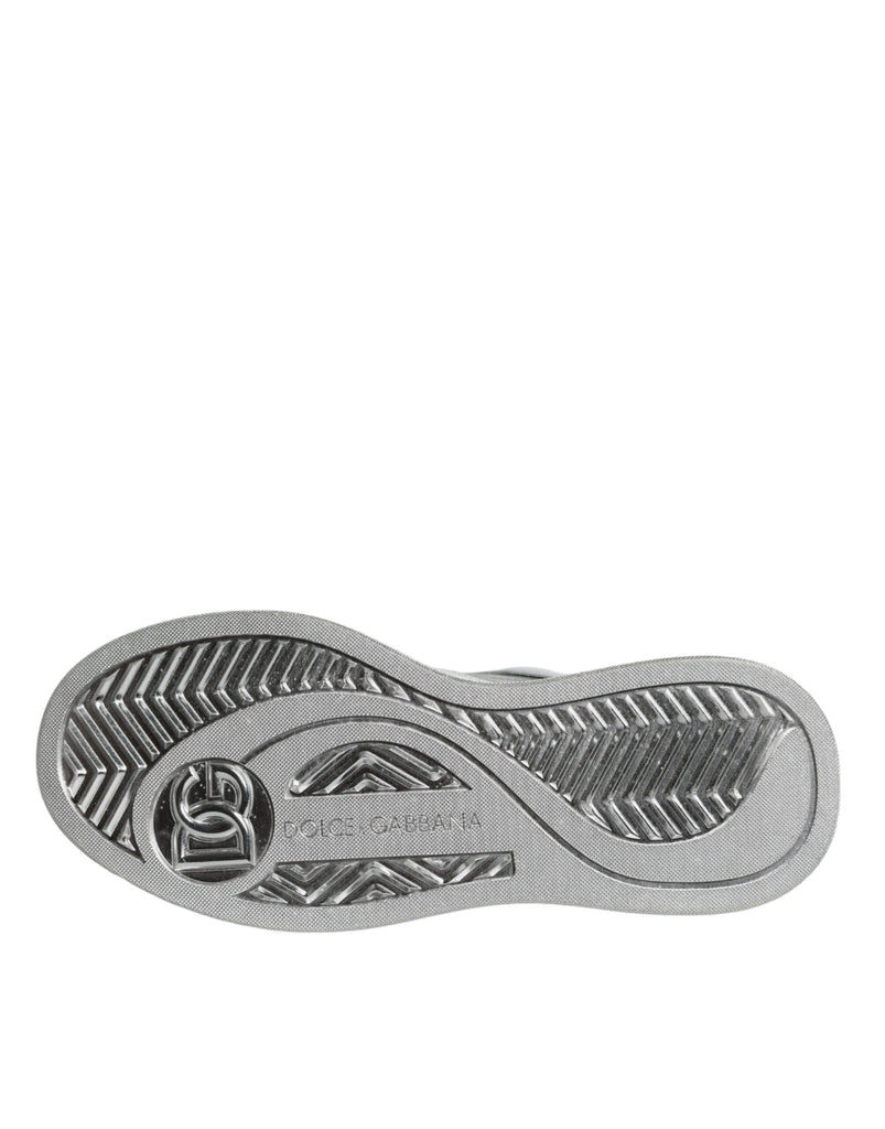 Dolce & Gabbana White Silver Leather Low Top Sneakers Shoes