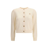 Maison Kitsuné’s Baby Fox Cardigan is a versatile garment with a clean, contemporary style. It features a front button closure and the iconic fox stitched on the front, a distinctive detail that adds a touch of personality to the essential design.