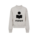 Cotton Moby Sweatshirt by Marant Etoile, ribbed crew neck, ribbed cuffs, contrasting iconic brand logo and monogram at front, ribbed hem, regular fit.