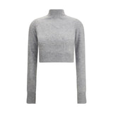 The pure cashmere cropped Sweater is a feminine and sophisticated piece designed to enhance the silhouette. With a fitted fit and waist length, it features a delicate slightly raised collar and ribbed trim on the cuffs, hem and neckline. Soft...