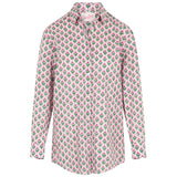 MC2 Saint Barth cotton shirt with floral print on pink background, mother-of-pearl button fastening and long sleeves with buttoned cuffs