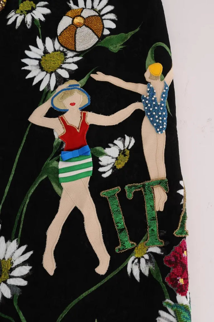 Gorgeous brand new with tags, 100% Authentic DOLCE & GABBANA Positano embellished skirt. This knee-length Dolce & Gabbana skirt features an A-line shape with sequined and needlepoint embellishment. A pair of sun-bathers, needlepoint flowers, and writing adorn the skirt.