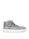 High Sneakers with Inner Fur MM6 Maison Margiela in grey technical fabric, lace-up front with tone-on-tone laces, slightly squared toe with small holes, contrasting white sole with hammered work. Engraved numbers on the back of the sole, iconic contrast stitching on the back of the shoe, fur on the inside of the entire shoe. Sole height: 4 cm-Sku inside:23NOV56