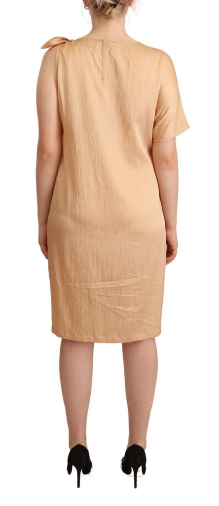 Gorgeous brand new with tags, 100% Authentic BOUTIQUE MOSCHINO shift one sleeve dress. Model: Knee length dress Color: Beige Zipper closure Logo details Made in Italy Material: 52% Viscose 48% Nylon
