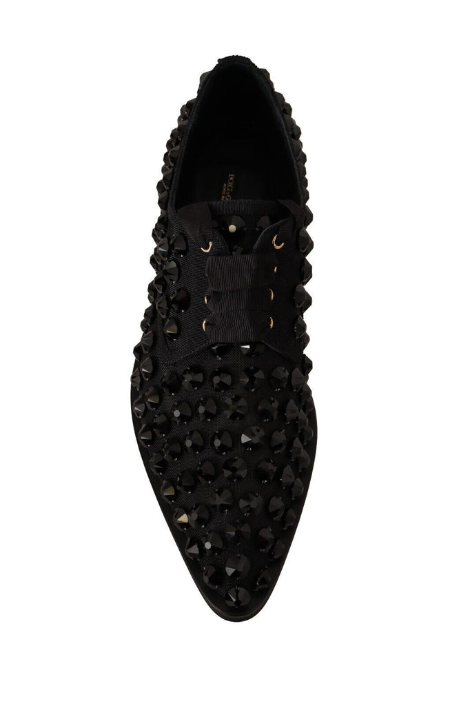 Dolce & Gabbana Black Lace Up Studded Formal Flats Shoes