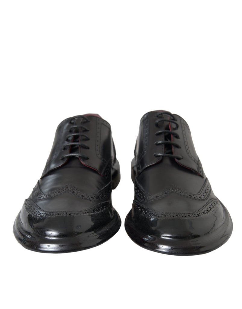Dolce & Gabbana Black Leather Oxford Wingtip Formal Men Shoes
