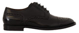 Dolce & Gabbana Black Leather Wingtip Mens Formal Derby Shoes