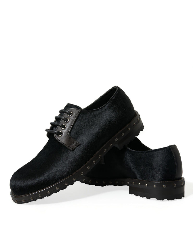 Dolce & Gabbana Black Stable Fur Derby SAN PIETRO Dress Shoes
