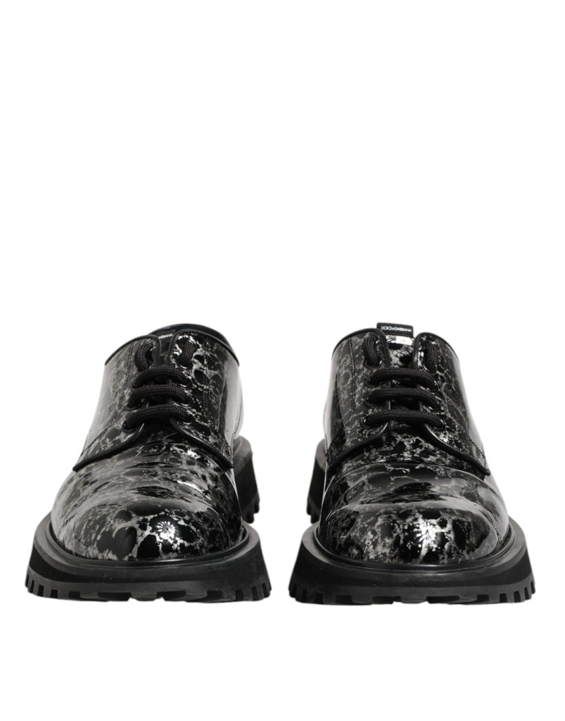 Dolce & Gabbana Black White Calfskin Chunky Derby Shoes