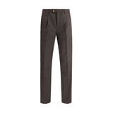 Brunello Cucinelli’s virgin wool Pants feature a button-and-zip front closure for a secure and sophisticated fit. The two side slash pockets and back welt pockets offer practicality without sacrificing style. The waistband has belt loops, allowing you to customize the fit.