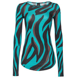 Pinko long-sleeved fitted sweater in wool-blend jersey with colorful animal print