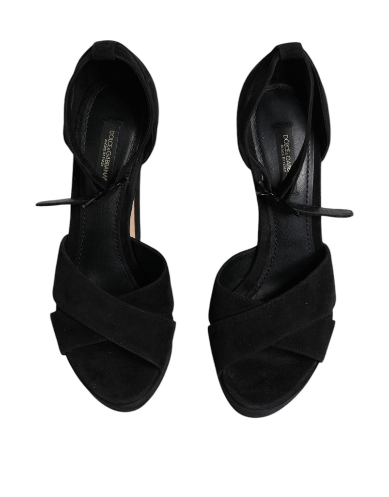 Dolce & Gabbana Black Leather Platform Heels Sandals Shoes