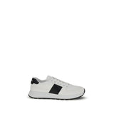 Prada’s leather Sneakers feature a two-tone design that combines elegance and contemporary style. Featuring a lace-up closure and reinforced toe for added durability, they are complemented by the logo on the back, the brand’s iconic and recognizable detail.