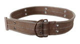 is crafted from brown leather canvas, this classic belt featuring rustic-tone hardware and a round buckle fastening.