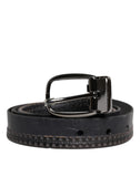 Dolce & Gabbana Black Leather Silver Tone Metal Buckle Belt
