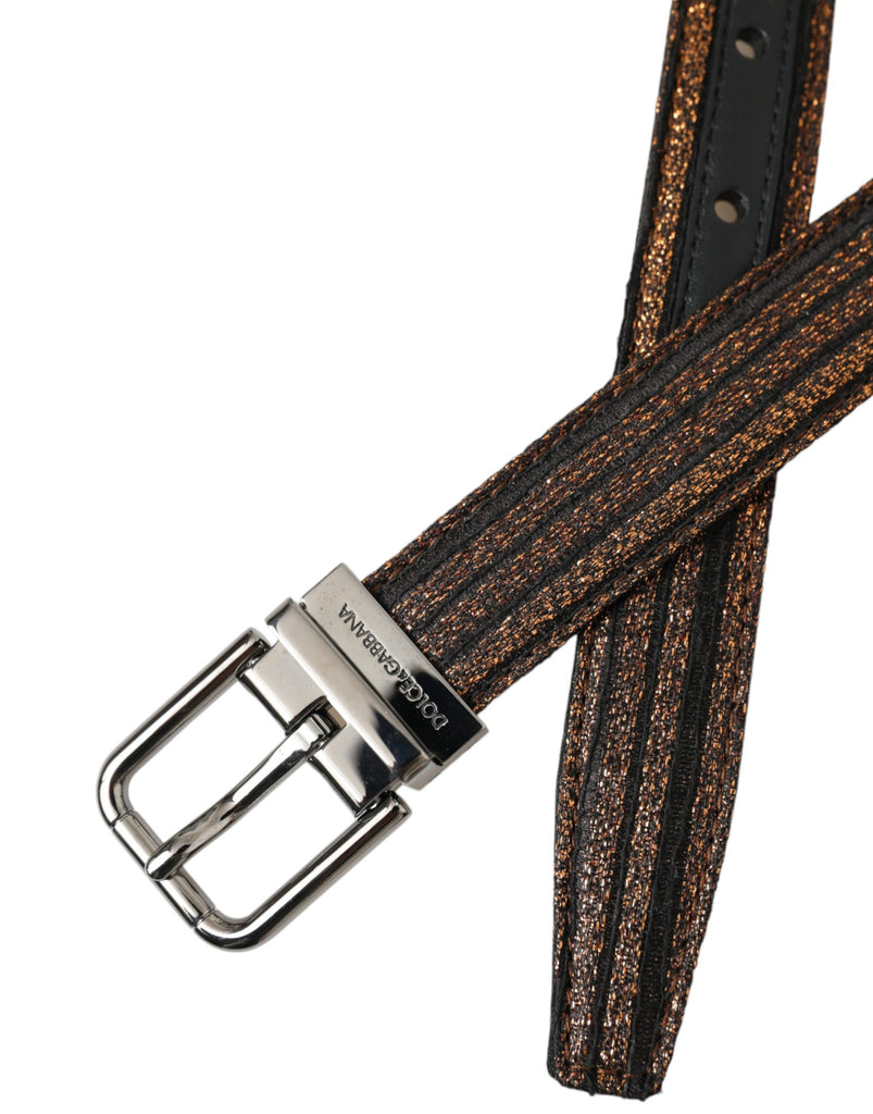 • Name : Dolce & Gabbana Gold Jacquard Stripes Silver Metal Buckle Belt