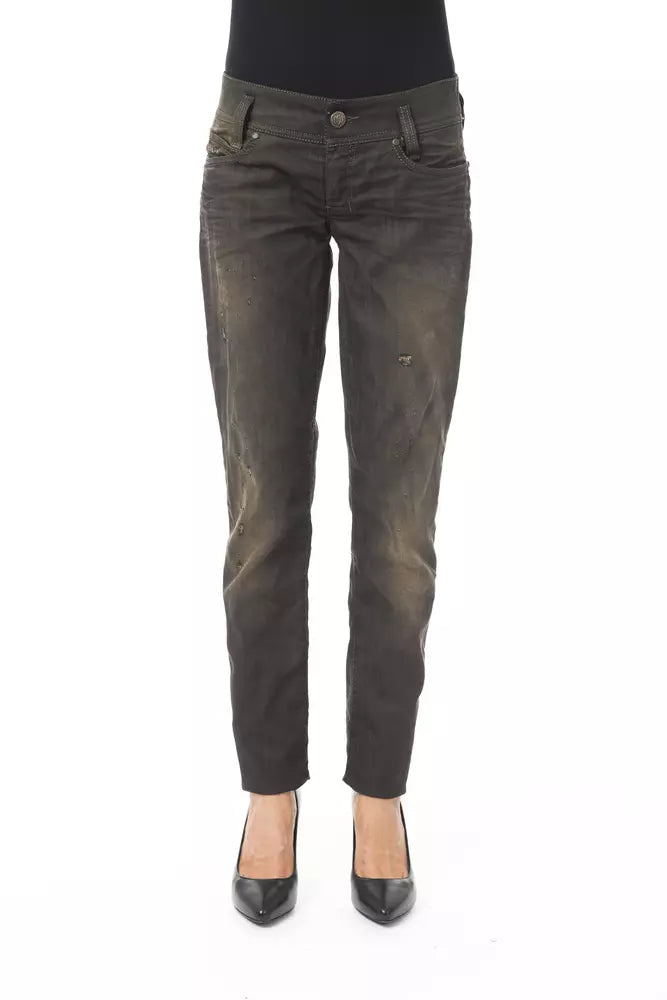 Elevate your denim game with these chic BYBLOS Regular Fit Jeans. Meticulously crafted with the perfect blend of cotton and Lycra, these jeans boast a sophisticated washed effect, creating an edgy yet polished look. Featuring convenient front and back pockets and a signature personalized button closure, these jeans are the epitome of Italian craftsmanship. Slip into luxury with a pair redefining boldness and trendsetting in the world of fashion denim.