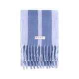 Marni’s Scarf is a wrap-around accessory with character, made from a fine blend of alpaca and mohair that ensures warmth and softness. The design features a contrasting reverse and dégradé fringing, elements that add movement and originality. The Maxi Marni lettering gives a bold graphic touch, while the logo patch sewn on the outside signs the garment with the brand’s unmistakable style. Perfect to complete the look with a bold and contemporary detail.